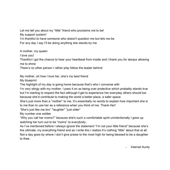 Point is, I’ve outgrown being so willing I’m okay with getting nothing when I know I’m beneficial— least that can be done is affirmation of acknowledgement or a thank you but that’s my fault because in the back of my mind it was okay if they didn’t say thank you since that’s how they are and I love them for them. And NO, this doesn’t mean stop doing things out the kindness of your heart, and start looking for things in return. It means make sure you find a balance between doing and your extracurricular advances are being done on your own terms and being appreciated in the very least.