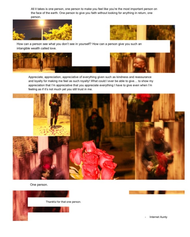 Reflecting on this is interesting because I’m such a “I don’t deal with” ass person but realistically I am, I’ve been “dealing” with trying to understand why I’m so willing to be loved one-sidedly and that still not be enough. I guess it’s not strenuous when you don’t recognize what’s being essentially dealt with is also caused by you. Or even when you realize that you just don’t care because it could be worse. Or maybe you see a bigger picture that all has to do with you as an individual and not your counter which in my case are love interest for the most part.